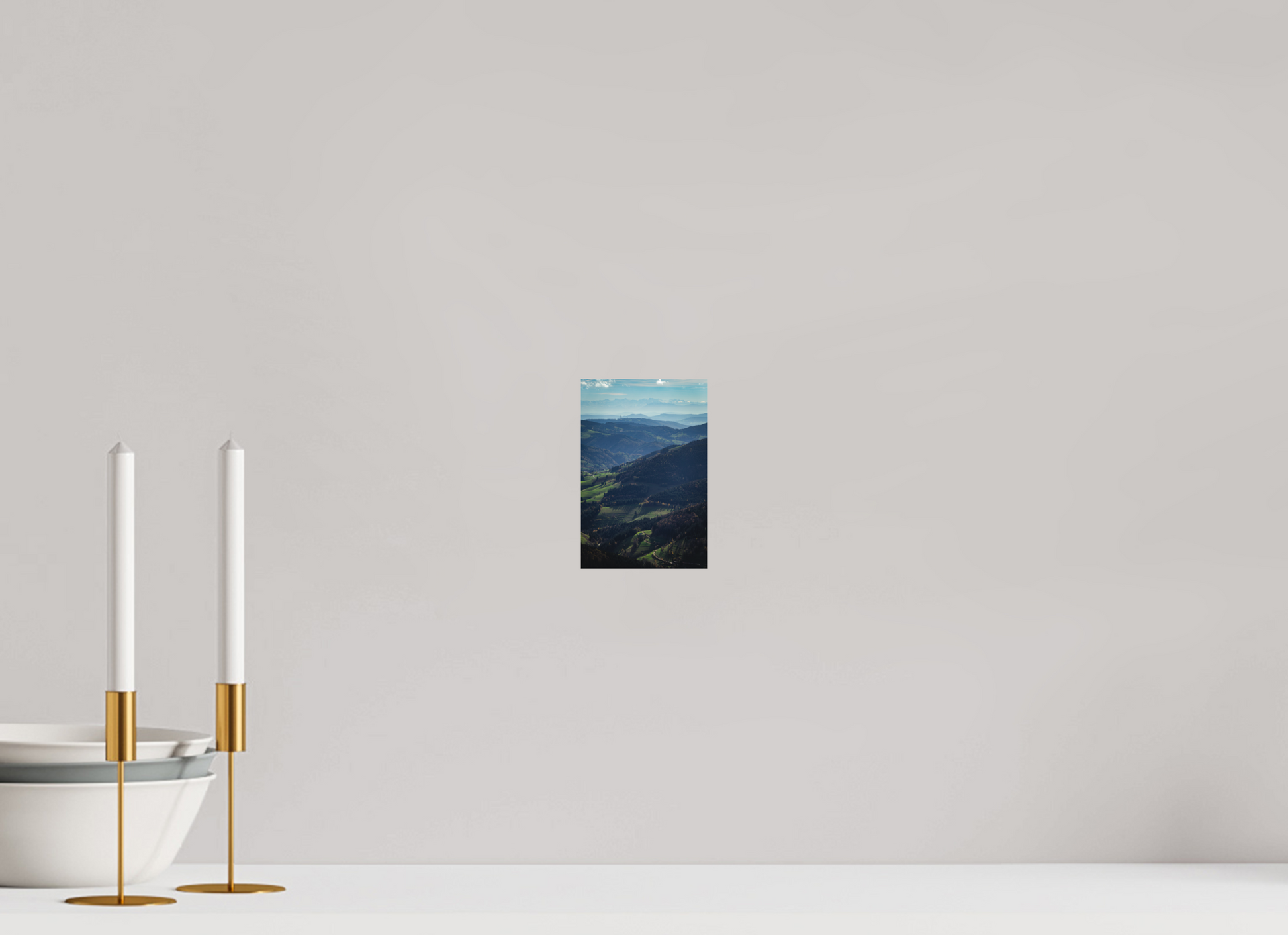 Ein sanfter Morgen erhebt sich über dem Südschwarzwald. Die Täler legen sich hintereinander und wirken fast schon klein im Vergleich zu den Alpen, die sich im Hintergrund aufbauen. Grüntöne des Schwarzwaldes kontrastieren mit dem weiß der Alpengipfel. Eine mystische Stimmung.