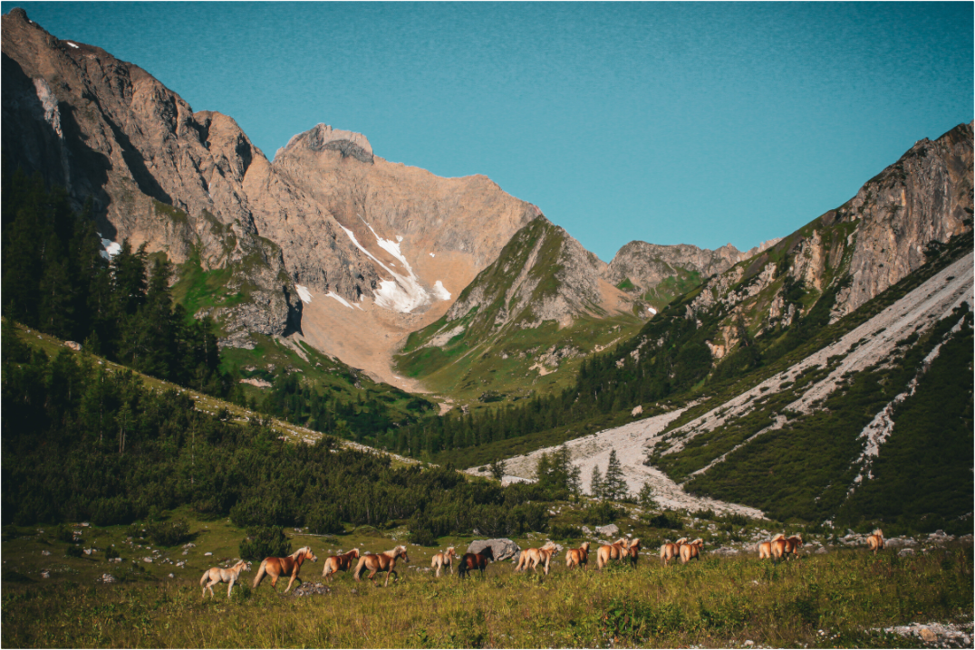 Ein sonniger Morgen in Tirol. Du bist früh aufgestanden und hast schon den ersten Gipfel überquert. Als du eine Pause machst siehst du sie auf dich zulaufen - eine Herde an Pferden. Wild, frei und mit dem wohl schönsten Ausblick, den sich ein Pferd wünschen kann.